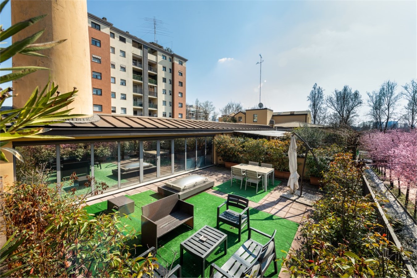 Questo particolare immobile è situato all’interno di un gradevolissimo complesso, nato dalla riconversione di un fabbricato industriale. Un luogo suggestivo, ben curato, dove regna la tranquillità assoluta. La presenza di due grandi terrazzi, rende questa soluzione particolarmente affascinante.
