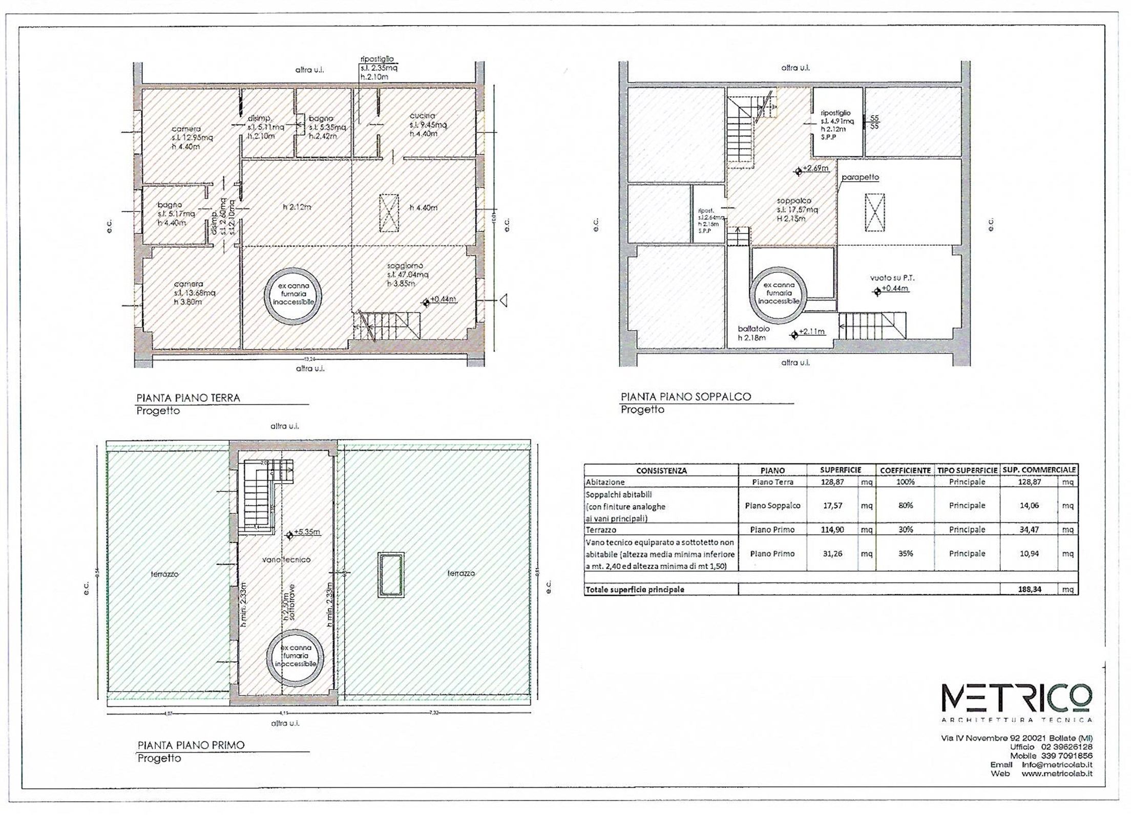 La superficie abitativa si sviluppa su 3 livelli: il piano terra di circa 135 mq è composto da un grande open space, 3 ampie stanze e 2 bagni.