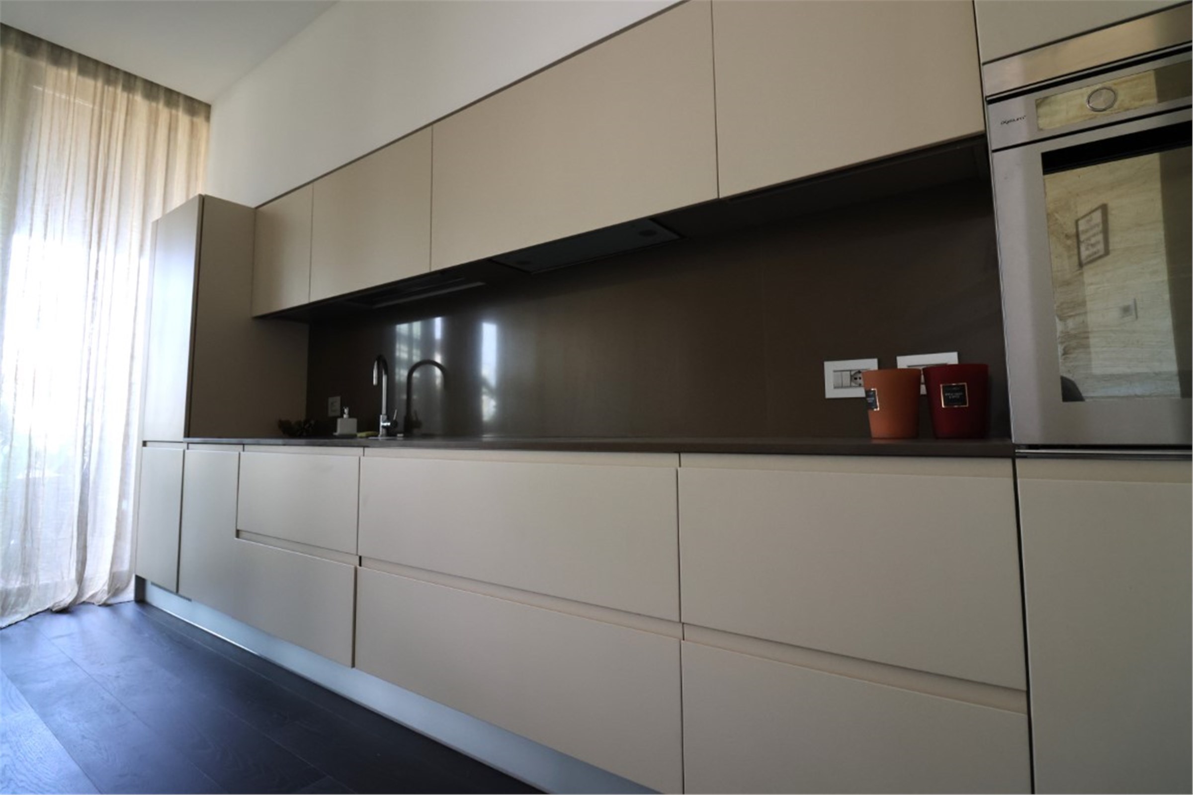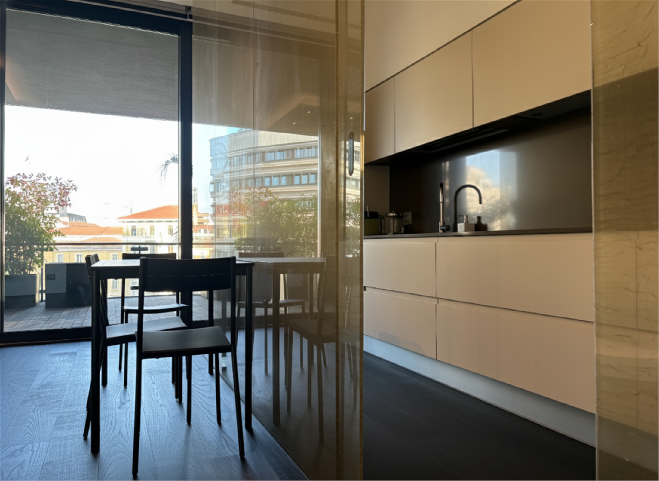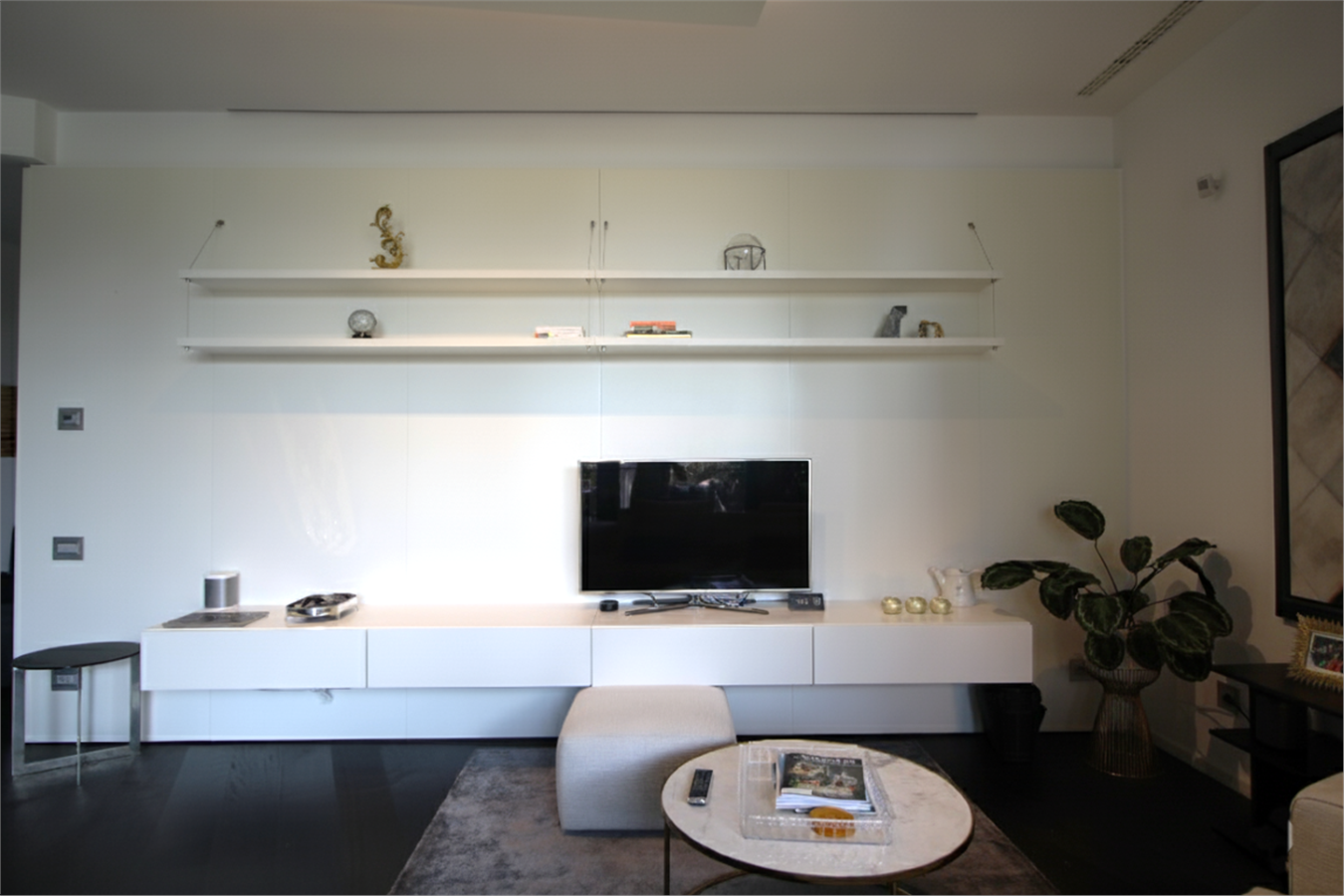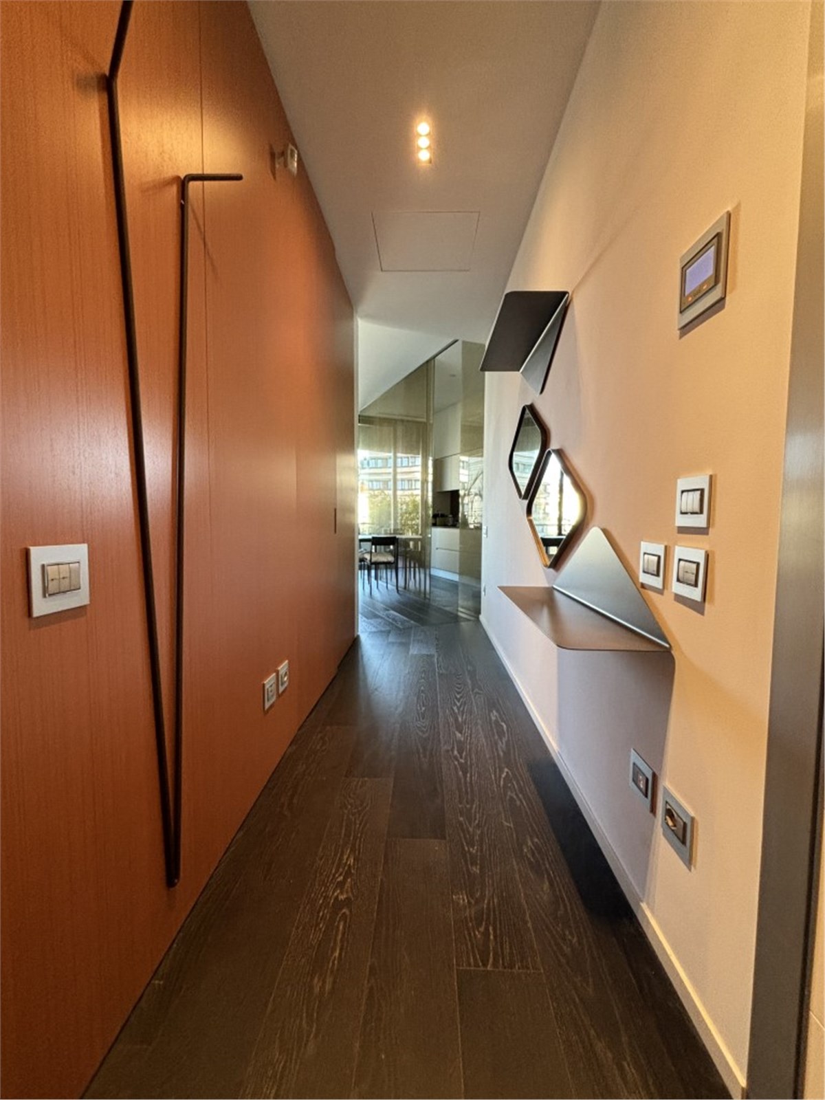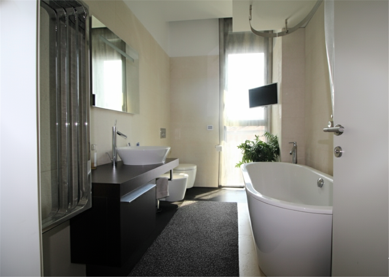 L’arredamento fisso, costituito da armadiature realizzate su misura in stile contemporaneo, è curato, armonioso e di design ed è incluso nel prezzo. Sofisticato impianto di domotica. Riscaldamento, aria condizionata e acqua calda centralizzati. Parquet in tutta la casa. L’edificio vanta un sistema di sicurezza all’avanguardia.