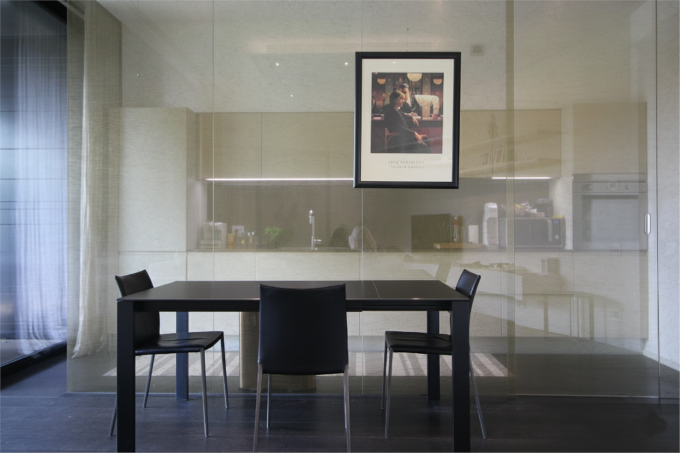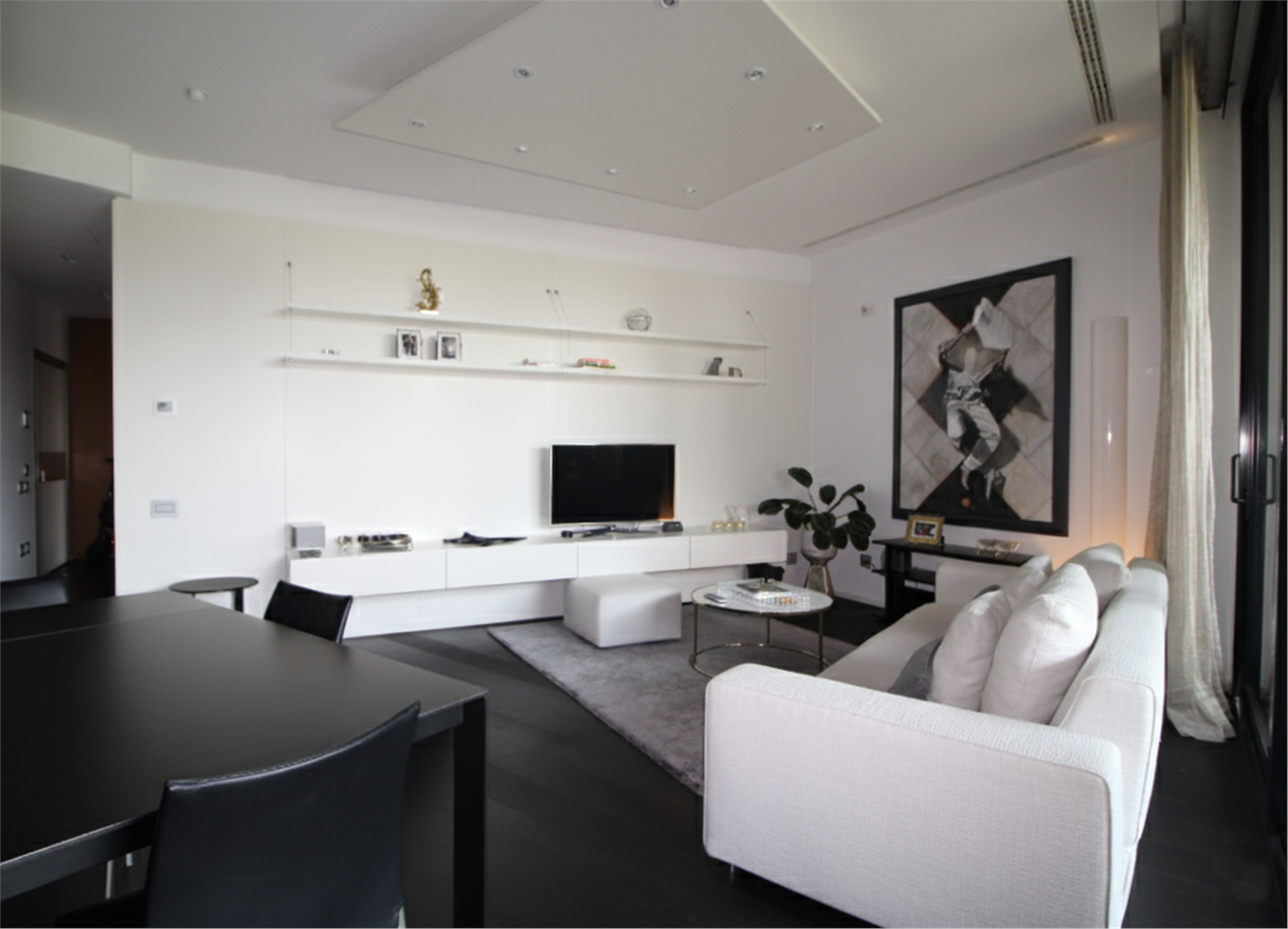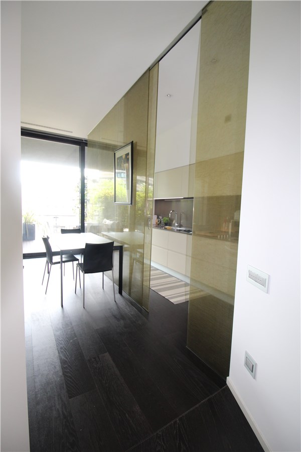 La superficie commerciale di 90mq circa comprende un soggiorno/pranzo con cucina parzialmente a vista. Le grandi vetrate a tutta parete mettono in comunicazione il soggiorno con il terrazzo, dando una sensazione di grande ampiezza.