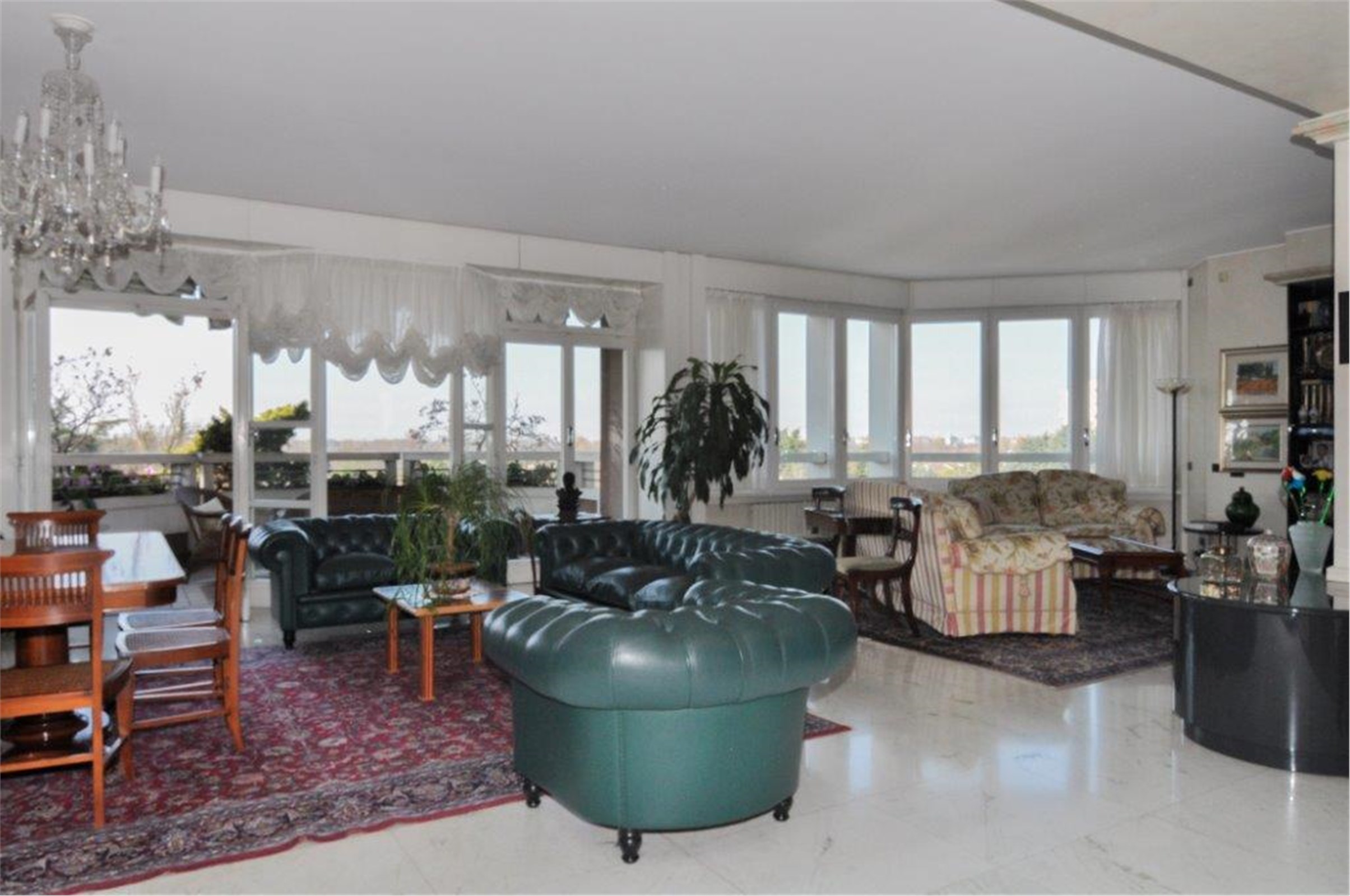 San Siro - Via Ippodromo, da sempre considerata signorile ed esclusiva per la sua particolare posizione immersa nel verde (ma a soli 8 km dal centro della città) e per gli eleganti edifici dotati di club house e piscine condominiali. In esclusivo complesso residenziale di prestigio con sevizio di portineria 24h, ampio e rigoglioso giardino dotato di percorso vita, piscina, palestra, area giochi bambini interna ed esterna, elegante appartamento di rappresentanza sito al 5° piano con magnifica vista sul verde condominiale, sull’ippodromo, trotter e sulle montagne. Lo spazio abitativo di 250mq circa si compone di un luminosissimo soggiorno doppio con terrazzo spazioso, ideale per accogliere numerose piante e per ospitare pranzi e cene all’aperto durante la stagione calda; la zona notte prevede 3 camere da letto, 3 bagni e un ripostiglio; nella zona di servizio si apre una bella cucina abitabile con un grande terrazzo, una camera di servizio e una lavanderia/bagno di servizio. Vetri doppi. Aria condizionata. Box doppio di pertinenza per un costo extra. Spese condominiali € 12.500,00. Prezzo di vendita € 990.000,00. Classe Energetica D kWh/m2a 107,21.