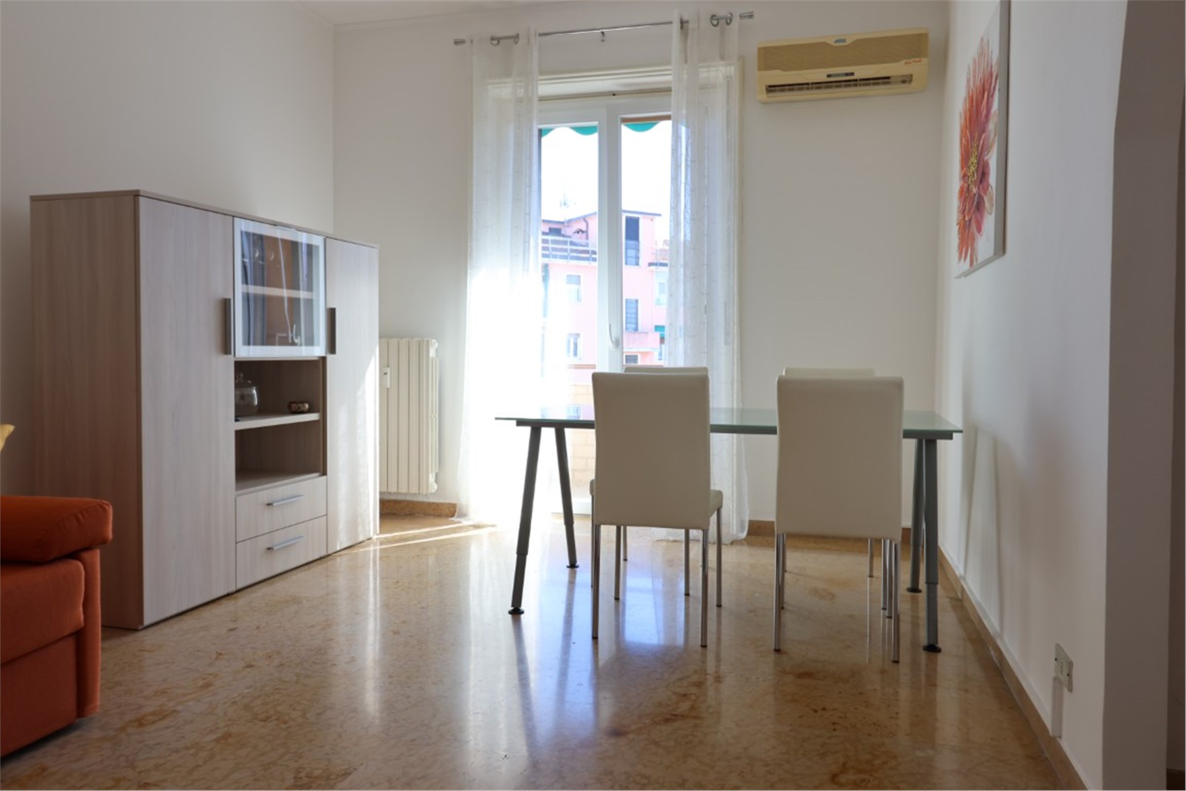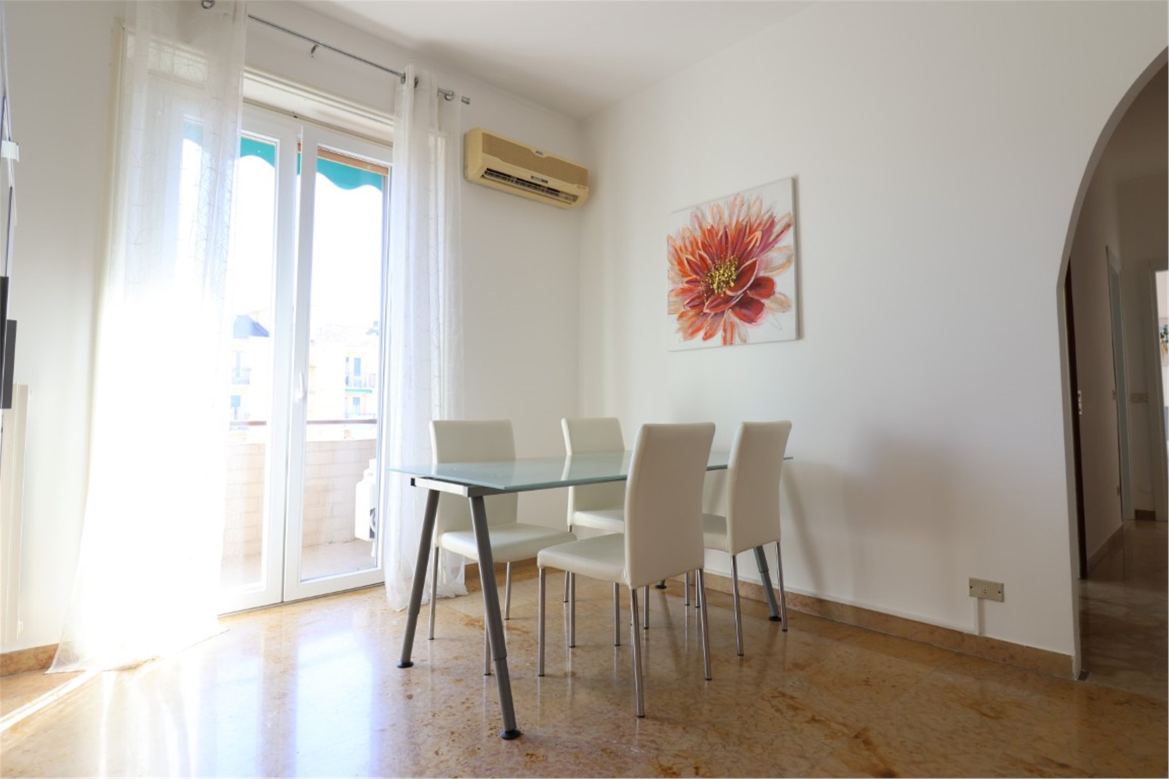 Pavimenti in parquet e marmo. Aria condizionata. Zanzariere. Porta blindata.