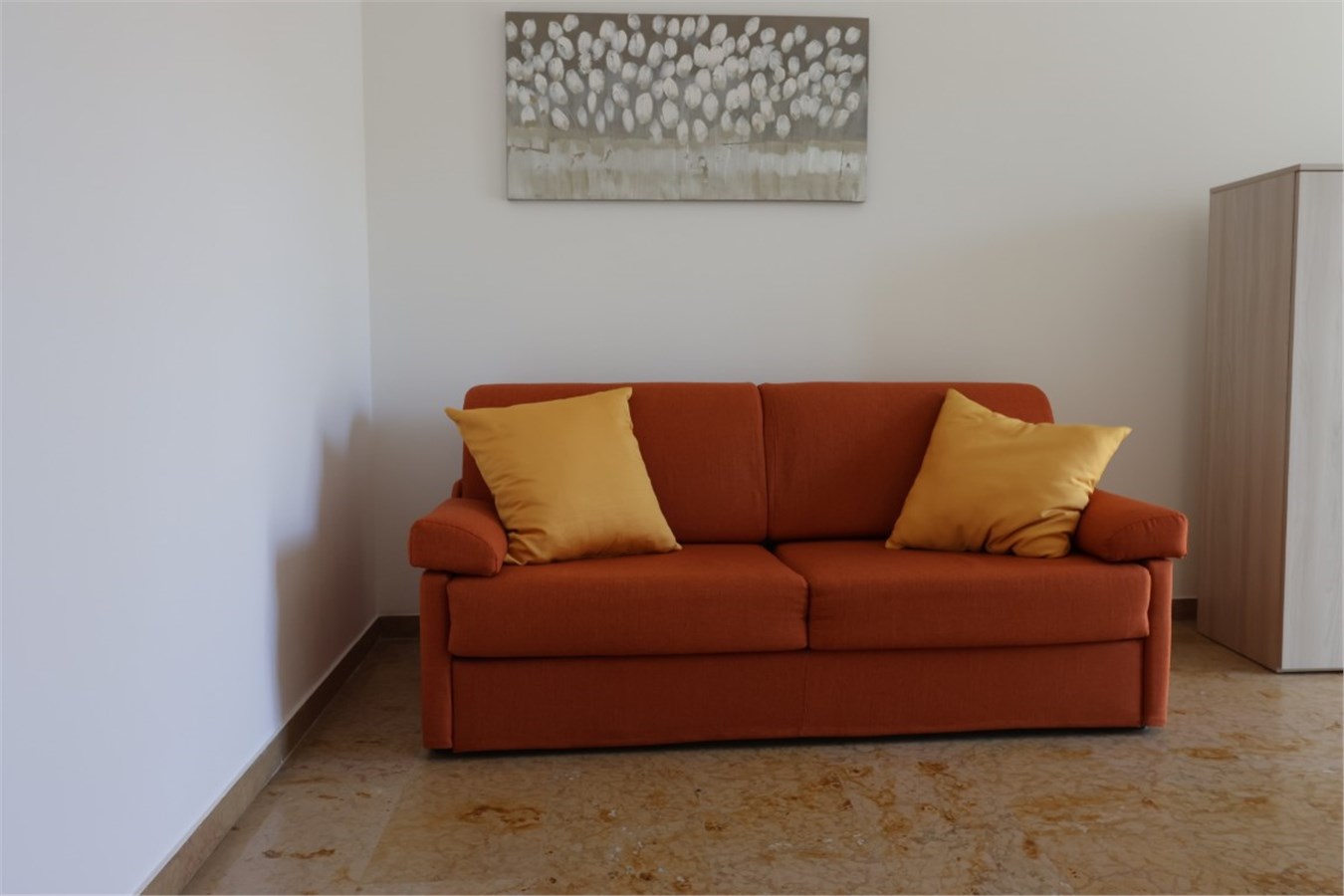 Arredamento: moderno e curato. Divano letto in soggiorno.