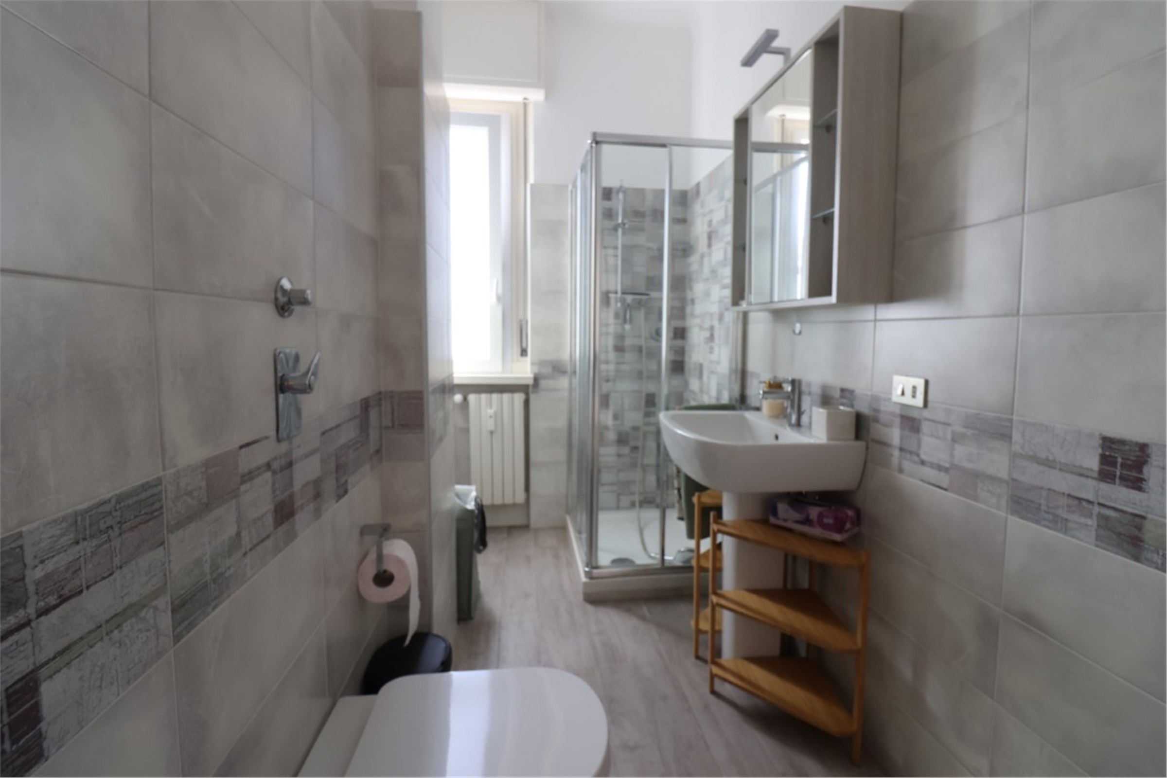 La luce e il silenzio sono i protagonisti di questo carinissimo bilocale di 65 mq situato nel secondo cortile interno di un edificio moderno con servizio di portineria.