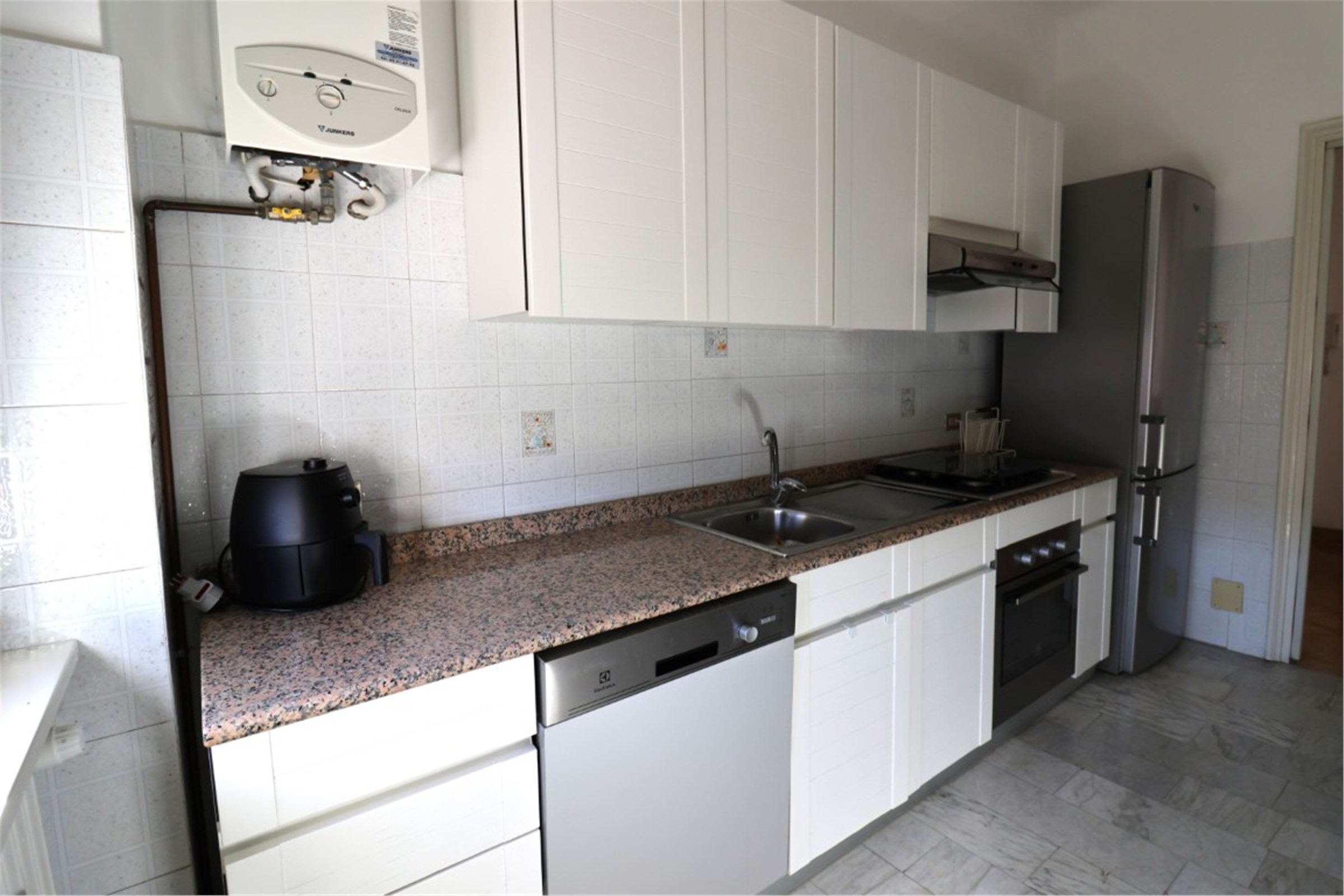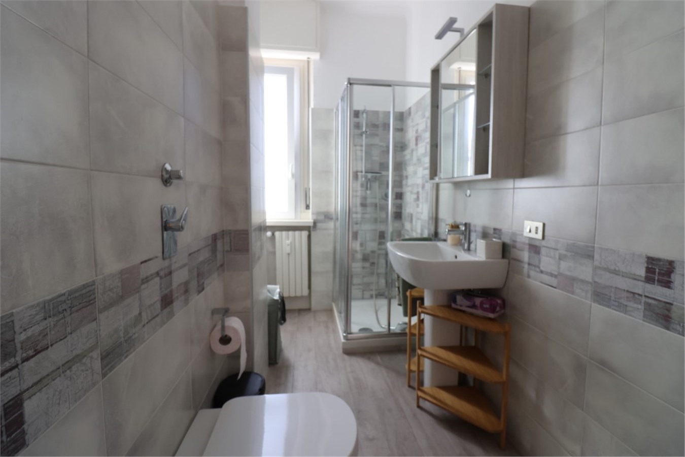 L’appartamento è posto al 7° piano e si compone di un ingresso, soggiorno con balcone prospicente il cortile interno, cucina abitabile, una camera da letto con balcone, bagno recentemente ristrutturato.