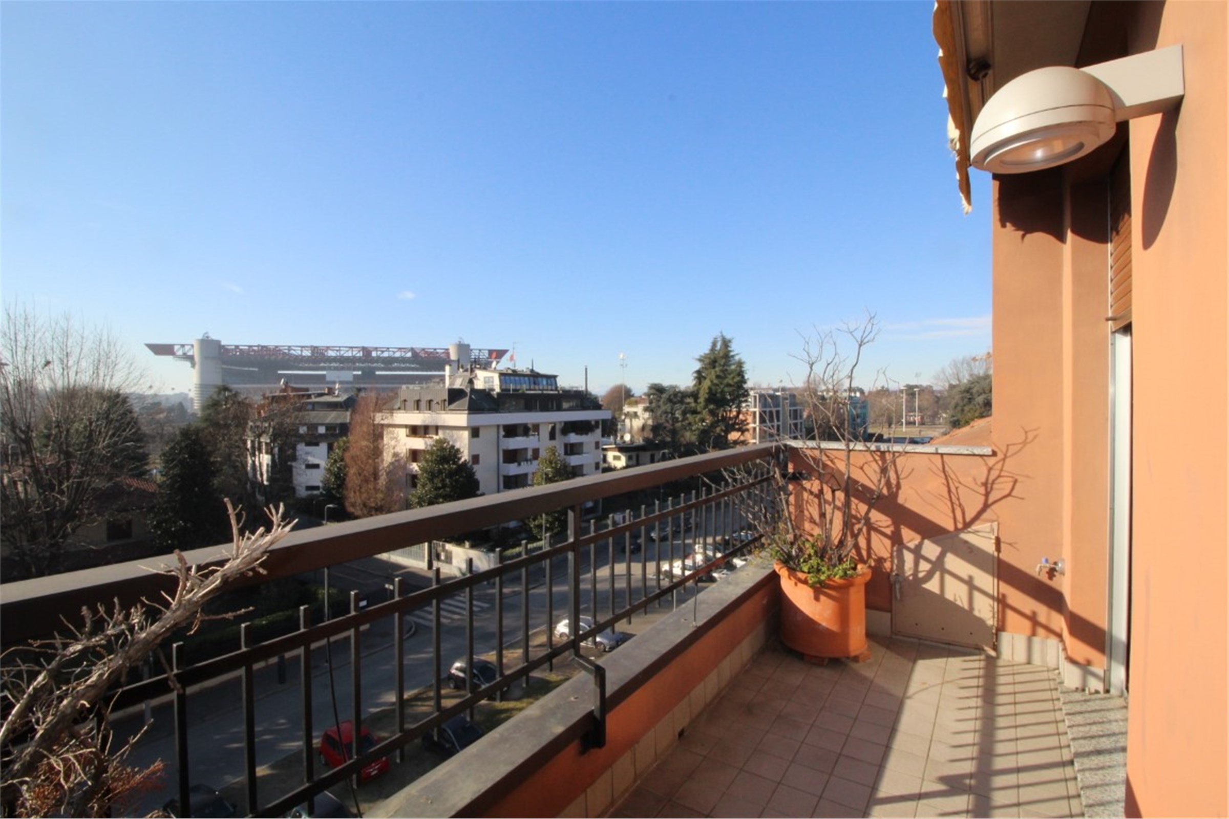 ZONA San Siro, Via Palatino - MM linea Lilla, fermata San Siro Ippodromo. In quartiere tranquillo e ben abitato, elegante palazzina moderna di medie dimensioni, con grazioso giardino condominiale, mansarda signorile, recentemente ristrutturata con materiali di alto standing. Si tratta di uno spazio abitativo di 100mq al 5° piano di un elegante immobile dotato di portineria (mezza giornata), ascensore e eventualmente garage. L’appartamento, molto luminoso, si compone di un soggiorno con camino, una camera da letto, una ulteriore piccola camera, un ampio bagno nuovo con doccia e vasca idromassaggio, un bagnetto di servizio, una bella cucina abitabile arredata, due balconcini. Aria condizionata. Arredamento: di qualità con alcuni armadi su misura. Pavimenti in marmo e parquet. Canone mensile € 2.000,00 più € 210,00 di spese di condominio salvo conguaglio, oltre riscaldamento autonomo. Possibilità ampio box auto al prezzo di € 200,00 mensili.